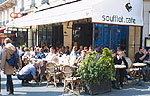 Café Atelier 95 bd du Montparnasse, 6e, M° Vavin, tel: 01 45 44 98 81, open daily. Okay, the art on the walls is less than youd expect from the name, but thats the only negative point against this favorite with students and media people. The large terrace is perfect for whiling away the afternoon in the sunshine, while checking out the dogs of La Coupoles clientele across the street. The music is eclectic, the service friendly if sometimes a shade tardy, and the prices just right. At night, that terrace can become extremely crowded, particularly during the establishments 7-9pm happy hour, but you can always retreat into the blush-red interior and one of the ironically cozy booths for a serious tête-à-tête.