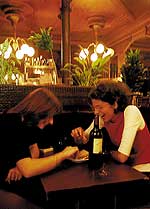 Aux Bons Crus 7 rue des Petits Champs, 1er, M° Bourse, tel: 01 42 60 06 45, open noon to 11pm, closed Sat nights and Sun. This appealing wine bar dates back to the turn of the century and has retained much of its old-world feel complete with ancient monte-charge, wine kegs and old oak bar. Well-priced, nourishing fare such as a good navarin dagneau aux petits legumes and cuisse de canard from the Landes, make up for the inexpensive yet surprisingly limited wine list. The back room, with its low ceiling and large windows overlooking the Palais Royal, has a pleasing ambiance, particularly on a gray winters day, and makes a perfect place for that secret rendez-vous.