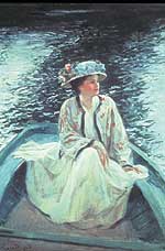 During the late 1890s there were a number of talented Americans who studied in Paris and went on to establish an expat artists colony in Giverny, following in the footsteps of their impressionist master, Claude Monet. Among these, several Californian painters... Frederick C. Frieseke was one of the best known American painters in France, as was Guy Rose, who eventually returned to Los Angeles after a long sojourn in this region. Rose was part of a handful of Monets transatlantic disciples who actually developed a friendship with their mentor. Like many members of the group he alternated between landscapes and portraits of family members. Several of his Giverny compositions are represented in this overview, including The Green Parasol an archetypal image that reflects that periods fascination with Japanese motifs.